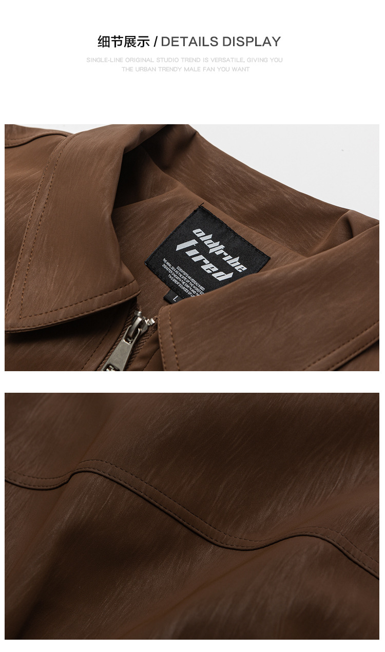 Solid Color Simple Large Pocket Couple Loose Versatile PU Leather Jacket